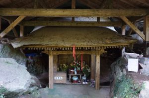 お堂後部の岩屋には代々の住職が眠っているといわれます。明治の廃仏毀釈で取り壊されたそうですが,その後再建されました。