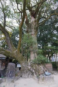 2019年12月4日2019年12月4日 青井阿蘇神社に行ってきました 2 (熊本県人吉市) Pocket 青井阿蘇神社拝殿:建磐龍命,阿蘇津媛命,国造速甕玉神の三神を祀る。訪れたときは菊の花の展示会が催されていて,境内にテントが立てられその中に花が飾られていました。 拝殿の向拝 拝殿(右)と弊殿(左) 弊殿の上部には,花鳥図の彫り物が施されています。柱等は黒漆で塗られていたとのことです。 弊殿に続いて廓(くるわ・右),本殿(中央)が続いています。 本殿の背面,側面の壁には×型の桟が見られます。 球磨地方独特の建築様式もふんだんに見られる建築物で国の重要文化財に指定されています。 御神木の大楠:根回り18メートル,樹高19メートル 境内にある摂社:青井稲荷神社(左)と宮地嶽神社(右)。他に興護(おきもり)神社,大神宮があります。 境内にある狛犬:しばらく眺めているとどことなく愛嬌を感じます。 2019年11月19日撮影 Pocket