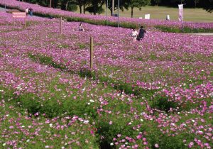 2020年11月6日 霧島ヶ丘公園のコスモス咲きました (鹿屋市浜田町) Pocket 霧島ヶ丘公園は秋のバラ祭りが開催されていますが,園内には,その他にも多種の花々が植栽されています。この時季はコスモスもかなり広く植栽されていて見頃を迎えています。10月の下旬に行きましたが,花はちらほら咲いているだけでした。 コスモスの合間に花の花やそばの花も混ざって咲いています。 以上2020年10月29日撮影 1週間くらい経ってから,再び出かけてみました。ほぼ満開です。 駐車場近くから,展望台までずっとコスモスの花が咲き綻んでいます。 コスモス園の中は迷路になっています。時期を遅らせて植栽されているためか大人の腰から胸の高さで花が咲き,園の中に入るとコスモスの花越しに青空と遠くの景色を楽しめます。 コスモス園の先に遠く開聞岳が望めます。(南西側) 花越しに見る高隈連山。(東側) まだ暫くは,バラと共にコスモスも楽しめそうです。 2020年11月5日撮影 Pocket