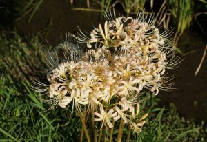 昔は赤が主だったのですが,最近は様々な色,形の花が見られます。その根の持つ毒性や昔からの迷信などで不吉な花とされますが,「情熱」,「独立」,「再会」,「また会う日を楽しみに」,「追想」,「深い思いやり」等の花言葉もあります。