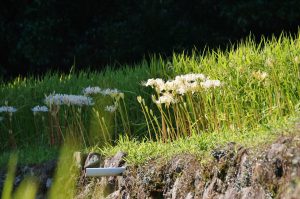 2023年9月12日 坂元棚田 ~ヒガンバナの咲き始めるころに・・・~ (宮崎県日南市酒谷) Pocket 久々に宮崎県日南市の酒谷道の駅に出かけました。近くに日本棚田百選に選ばれた,坂元棚田に寄ってみました。 坂元棚田: 日南市最高峰の小松山南斜面に広がる民家の屋根を葺く”茅場” だったところを,昭和3年から昭和9年に掛けて開墾されたそうです。(資料:日南市観光協会) そろそろ,ヒガンバナの咲くころです。 棚田には稲穂が実っています。 坂元棚田 カンナ:棚田の畦にはいろいろな花が植えられて季節によって楽しめそうです。 刈り取りにはまだ早いためか,作業する方もほぼいらっしゃらず,のんびりと歩いて散策できました。 ヒガンバナはこれから暫くは楽しめそうです。 坂元棚田 ヒガンバナ これだけの石垣を作るのはたいへんな作業だったことでしょう。それだけに棚田が完成し、米が実ったときの感慨はひとしおだったことでしょう。そんなこんなこと想いながらぶらぶらと・・・。 坂元棚田 坂元棚田 ヒガンバナ 坂元棚田 ヒガンバナ 坂元棚田 坂元棚田 パンパスグラス(シロガネヨシ) 坂元棚田 ヘクソカズラ:名前に似合わず可憐な花です。 坂元棚田 坂元棚田 ムクゲ ( 2023年9月7日撮影 ) 帰り道で道路を横切る猪の子供2頭を見かけました。 Pocket