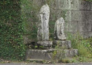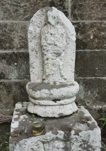 小学校から若宮神社方向へ進むと,コンクリートで塗り固められた崖の途中に石仏があります。